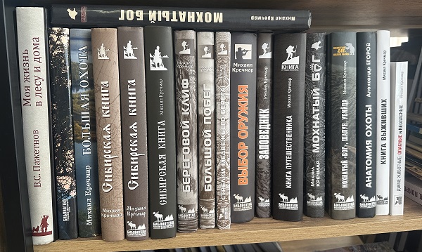 Вот так выглядит "Библиотека "Русского охотничьего журнала". Восемнадцать томов, из них три издания "Сибирской книги", три издания "Мохнатого бога", переиздание "Книги путешественника".