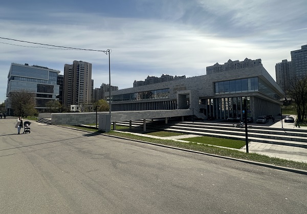 Пафосное здание с хоботом, претендующее на оригинальность. Внутри практически никого нет, в гардеробе висели только куртки тех студентов, кто пошёл на просмотр фильма.