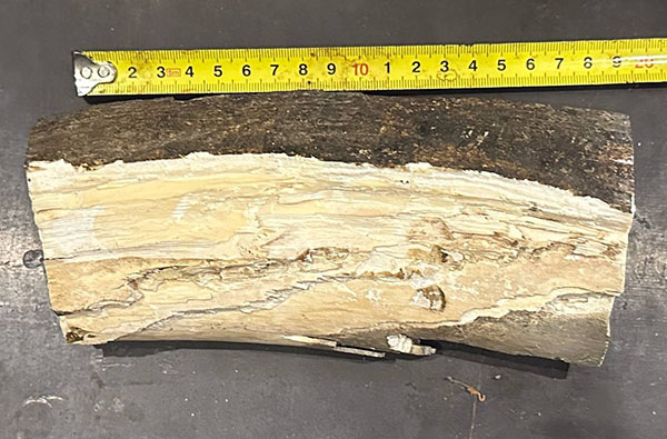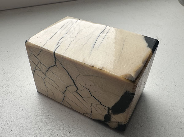 Массив сразу нашёлся, причём, при осмотре казался почти идеальным. Но таки моя знайт, что массив мамонта - штука вельми обманчивая, и любой, самый идеальный, кусок бивня хранит в себе совершенно непредсказуемые нежданчики. Ибо каждый из них хранился несколько десятков тысяч лет в очень нестабильной среде. многократно оттаивал, замораживался, напитывался водой и хз какими солями.