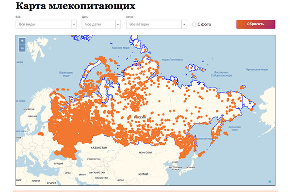 Карта млекопитающих России - в составлении которой может принять каждый желающий;