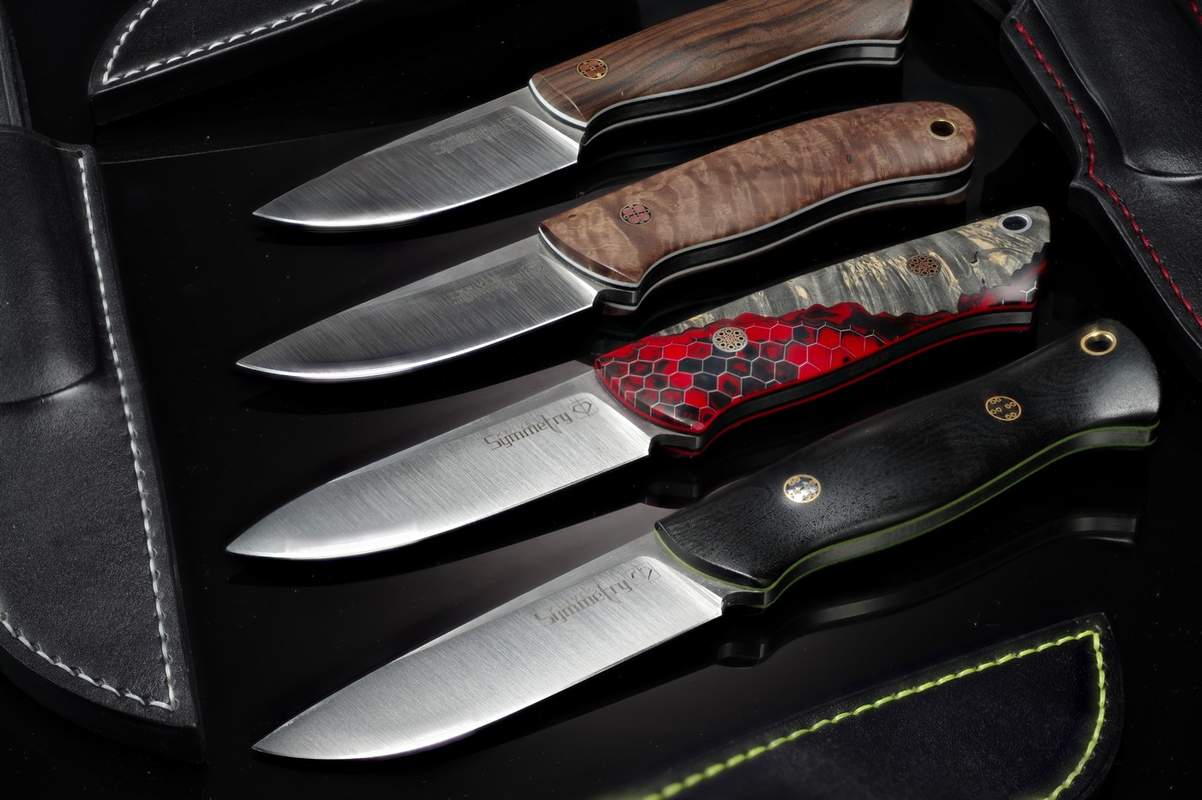 Д. П.: Ваши ножи выглядят очень ярко. Насколько я понимаю, одна модель может быть представлена в разных исполнениях, включая марку стали и материалы отделки?