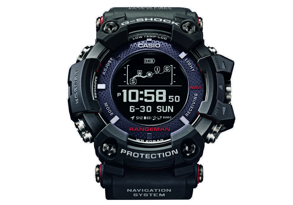 Часы G-SHOCK японской компании CASIO вот уже 35 лет подтверждают свою исключительную прочность и качество. В 2018 году бренд G-SHOCK берёт новую высоту и создаёт RANGEMAN GPR-B1000 – первые в мире часы с GPS-навигацией, работающие от солнечной батареи. Часы могут хранить до 20 маршрутов, журнал каждого из которых может включать до 60 точек (время, координаты и фото). Барометр и термометр в устройстве подскажут изменения погоды, компас сориентирует на местности, а альтиметр покажет высоту над уровнем моря.