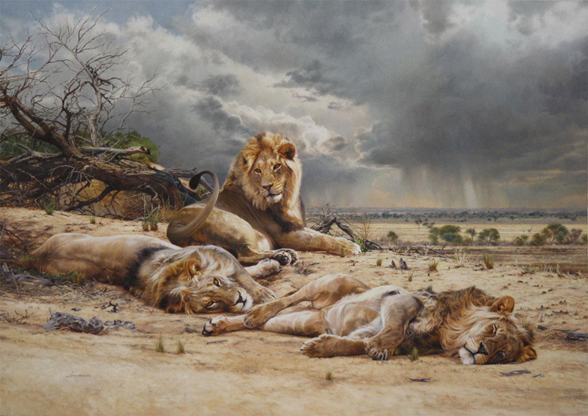 Людям свойственно высокомерно считать себя венцами творения и хозяевами собственной судьбы, но сам деле они лишь жалкие рабы обстоятельств, происходящих в мире помимо их воли. То, что произошло в дальнейшем, является блестящим подтверждением этого тезиса. Откуда ни возьмись на вершине склона оврага, словно привидения, в надвигающихся сумерках возникли три силуэта львов. Один за одним они спустились к озерцу и стали утолять жажду, после чего не спеша поднялись вверх по склону. Охотники, скрытые от львов чахлым кустарником, молили небо о защите. Да, оружие у них было, а вот патронов, чтобы справиться с тремя львами, ощущался явный недостаток.