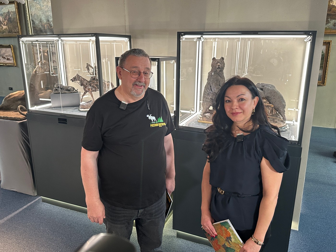 Встретили меня две замечательные девушки, Мария Цейтлина и Инга Мефодьева, которые и провели мне экскурсию среди этих, без преувеличения, выдающихся музейных экспонатов. Одна стена галереи полностью занята полотнами выдающихся русских «охотничьих» художников: Петра Петровича Соколова, Рудольфа Фёдоровича Френца, Николая Егоровича Сверчкова. Я обратил внимание на детальную проработку деталей охотничьего быта, одежды, оружия, характерные позы доезжачих, стрелков, егерей, возничих. Часть этих работ мне известна по репродукциям, часть вижу впервые. Большой неожиданностью для меня оказалось увидеть скандальную в прошлом картину Наркиза Бунина «Рыбная ловля» – где изображены «ловцы человеков» в виде рыбаков, стоящих у водоёма без штанов. Среди «ловцов» – А.П. Чехов, Л.Н Толстой и И.Е. Репин.